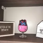 Een ingerichte kitchenette met een magnetron, een waterkoker en een koelkast zullen voor het gebruik van gasten staan. Dit appartement heeft een terras met uitzicht over de zee.